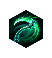 Summon a scythe that travels to Xul after 1 second, dealing 210 damage to enemies and spawning a Skeletal Warrior when hitting enemy Heroes. These do not count towards Xul's Raise Skeleton maximum.